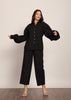 Black solid summer Co-Ord set, relaxed full sleeves shirt | formal two peace set, linen summer set, elastic...